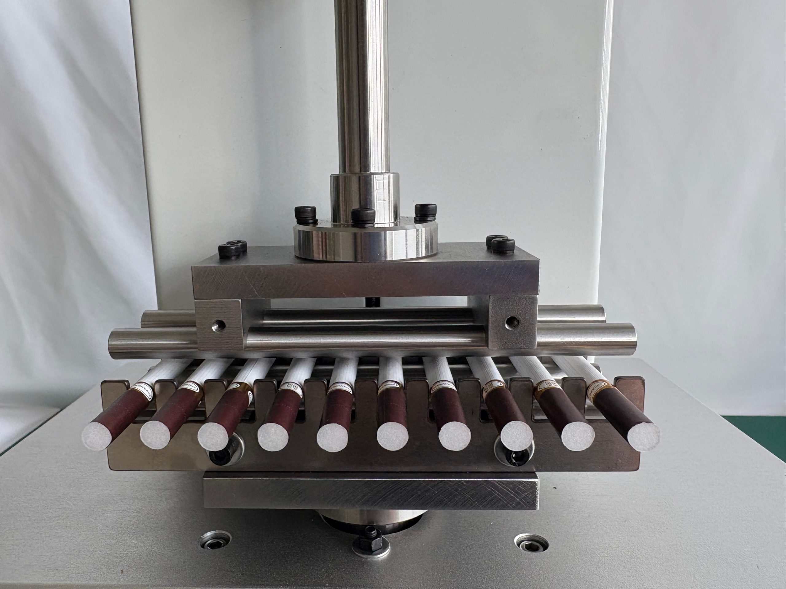 测试样品在一定时间内承受固定重量。卸载后测量香烟或者滤棒的剩余高度以计算样香烟或滤棒的硬度。全测试过程为自动测试。