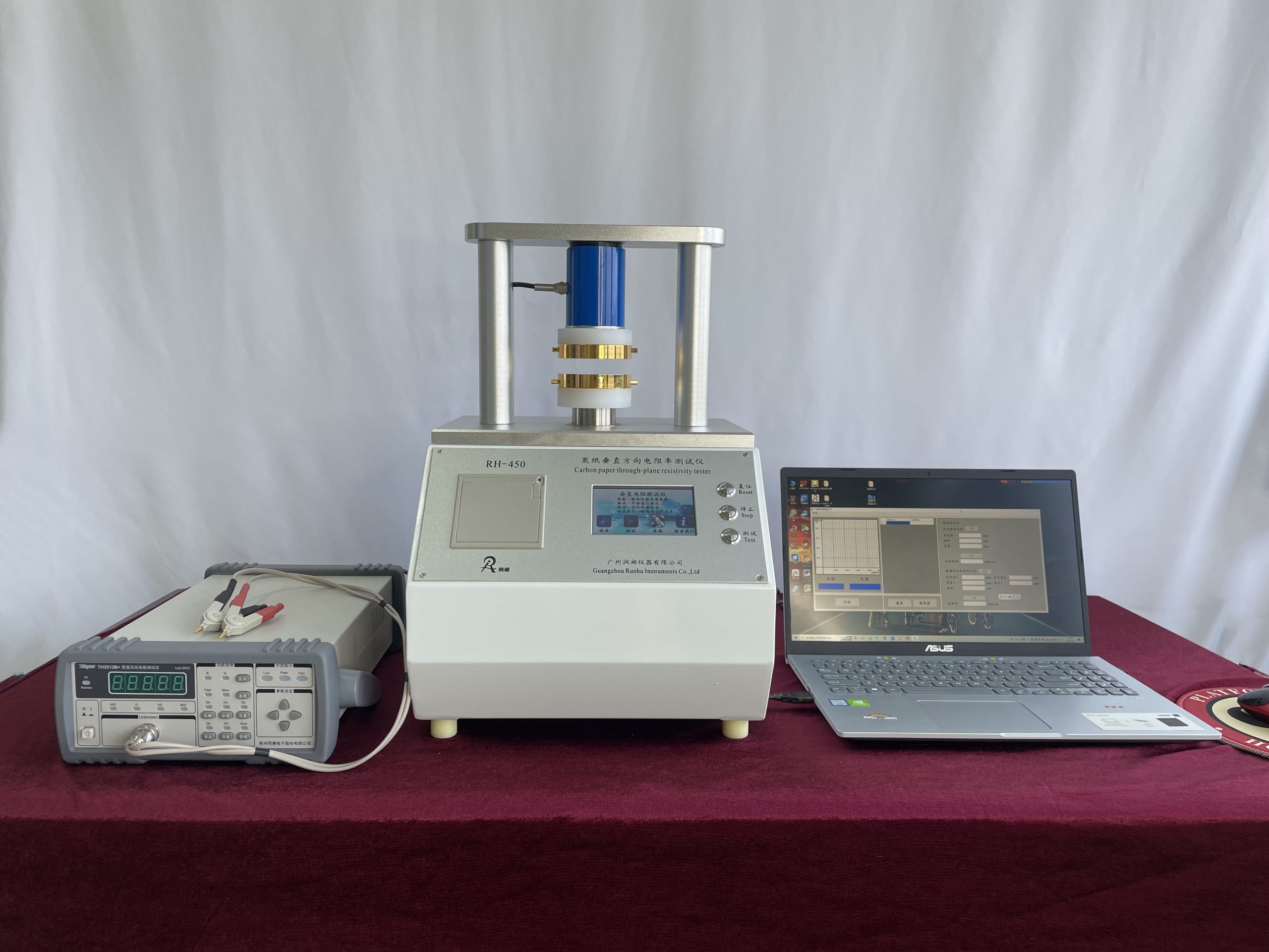 RH-450电阻测试仪用于测量燃料电池炭纸、双极板或其他材料的垂直电阻率和接触电阻测试。